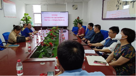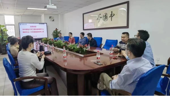 2023年3月17日下午,华中科技大学工程实践创新中心直属党支部李昕书记、启明学院双创办公室詹必胜主任一行4人莅临pa电子参观交流,座谈在研发楼417会议室举行。pa电子官方网站实验室主任梁栋及全体实验人员参加,陈振斌副院长主持会议。