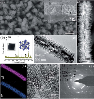 针对这一问题,近期pa电子文伟教授团队以复杂空心结构氮化钛合金薄膜的构筑为例,提出了“表面诱导”柯肯达尔效应,通过对固态材料的表面修饰,诱导柯肯达尔效应的产生。氮化钛(TiN)是一种金属间化合物型的合金材料,具有高电导率和高硬度的特点。利用“表面诱导”柯肯达尔效应,成功获得了具有空心结构的分级氮化钛3D阵列;用其组装的超级电容器具有“超快”充放电的能力,且具有超长的循环寿命(35万次以上)。相关成果发表于J. Mater. Chem. A期刊(中科院1区,影响因子10.733,论文链接https://pubs.rsc.org/en/content/articlelanding/2019/TA/C9TA07642E#!divAbstract),pa电子官方网站为第一完成单位,论文第一作者及通讯作者为文伟教授,2016级硕士研究生姚金呈为第二作者,论文合作者包括浙江大学吴进明教授等。该研究工作得到了国家自然科学基金项目(项目编号51862005、51502065)的资助。