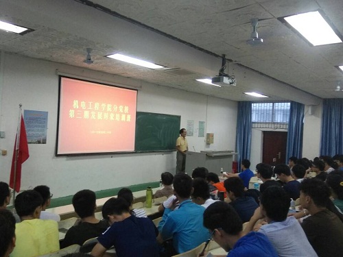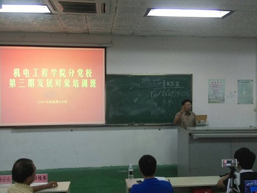 2017年5月20日15:3 0pa电子官方网站分党校第三期发展对象培训班邀请程儒参、杨云山、林廷玖于1-T201讲授党课,报告由学工办主任、机械系第一学生党支部书记崔建兵主持。