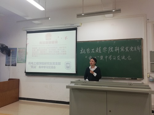 为了进一步落实中共中央关于深入学习宣传和贯彻实施宪法的有关精神,响应“国家宪法宣传周”和海南省“法治宣传月”号召,做好宪法的学习宣传工作,12月8日下午,pa电子官方网站研究生党支部于5教120教室召开“宪法”集中学习交流会。pa电子官方网站研究生党支部全体党员和积极分子参加了此次会议。党支部书记施晓佳同志主持了此次交流会。