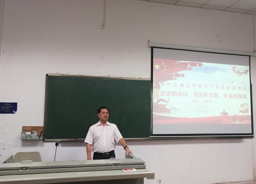 4月27日上午,pa电子官方网站分党校第七期发展对象培训班专题党课于2-106准时开课。本次专题党课由学院党建特邀组织员陈泰义老师为大家进行专题授课——为什么确立中国共产党的执政地位。