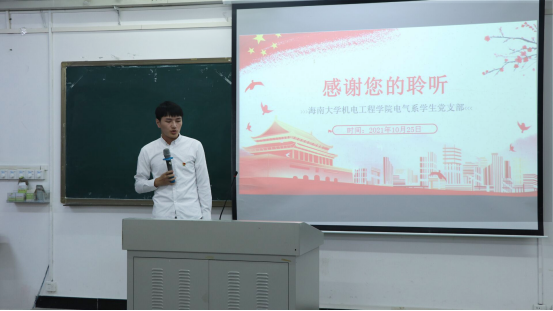 为提高pa电子官方网站2021级新生对党的认识,掌握入党要求和入党程序,帮助其树立正确的指导思想并明确入党动机,鼓励新生积极主动地向党组织靠拢,为党组织注入新鲜的血液并打造出高素质大学生党员队伍。2021年10月25日晚19:30,pa电子官方网站电气系学生党支部在城西校区8C01组织开展了以“党史学习教育和党的基础知识”为主题的理论宣讲大会。本次会议由支部青年委员廖伟杰主持。