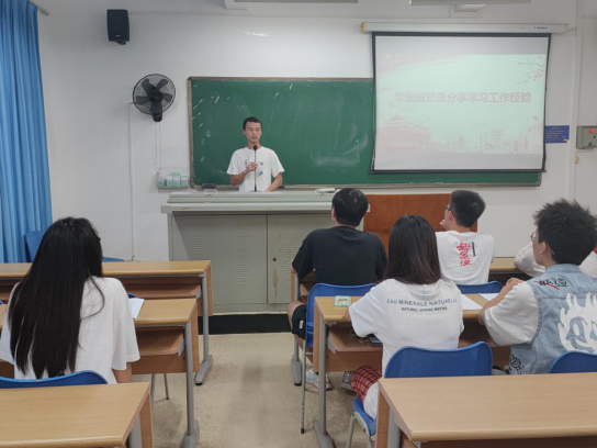 随后,毕业班党员封礼荣向在场的党员同学分享了自己的工作和学习经验,通过描述参军入伍的经历对自己就业的帮助,指出大学期间,党员同学们不应仅埋头于学习,还应积极向外界探索 ,提升自己各方面的能力,尤应掌握书写简历的能力并适当了解相应的面试技巧。同时,他也建议大三的同学们积极寻求与未来工作相关的兼职或实习机会,为自己将来的工作积累丰富的经验。