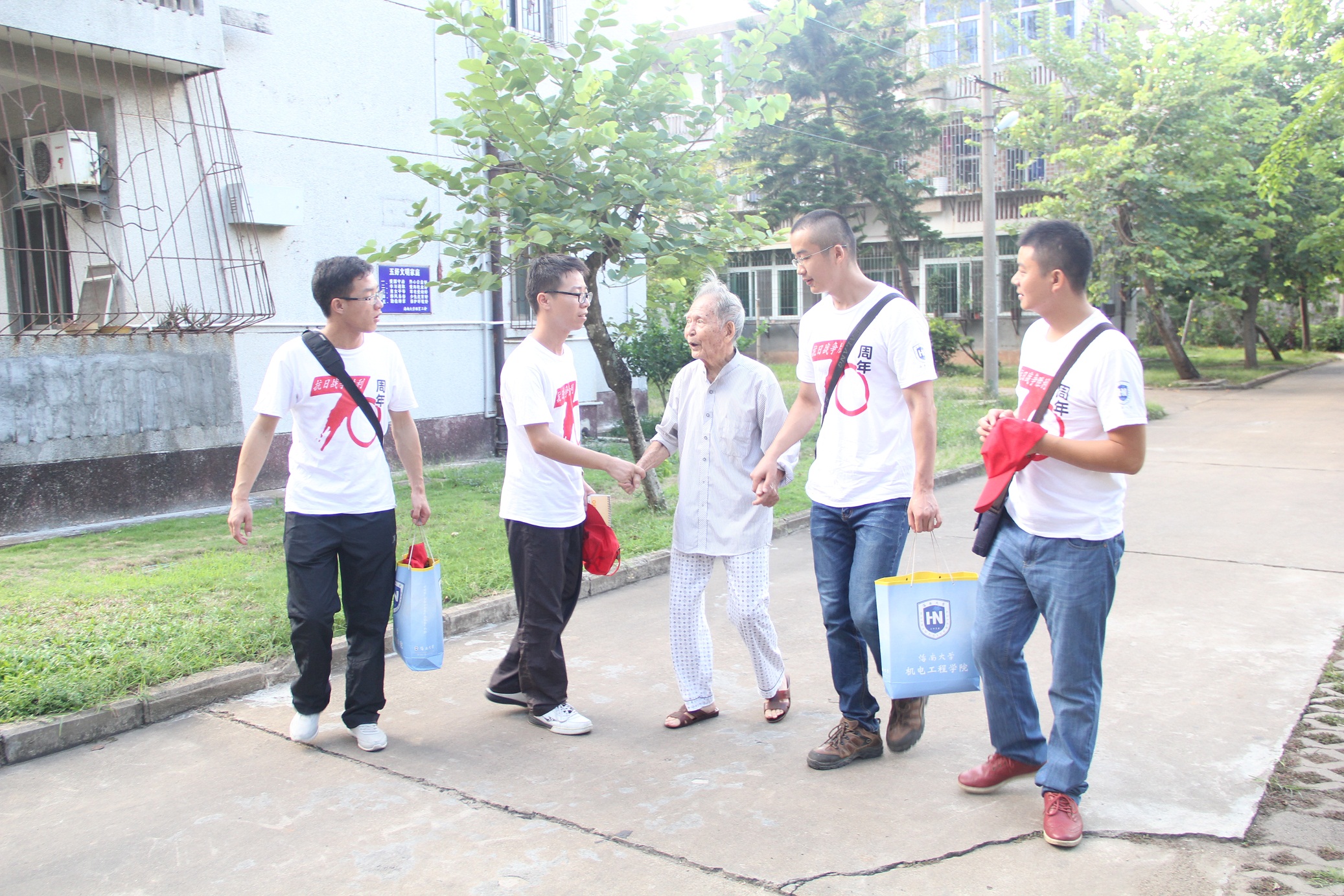 崔建兵老师为老人赠送纪念服