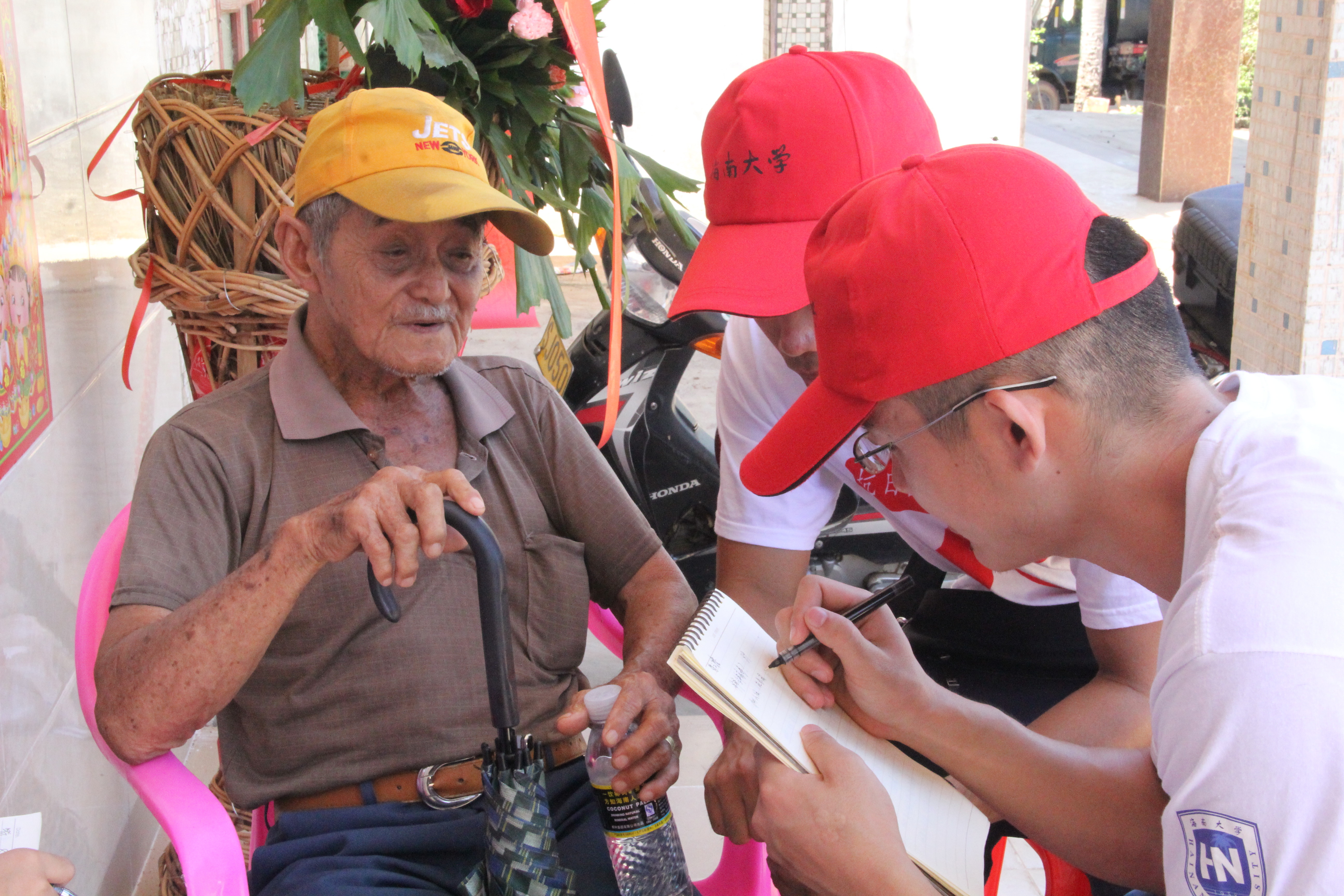 8月5日,由文昌市团委、pa电子官方网站联合组建的抗争胜利七十周年寻访团一行11人,分别对文城镇、东阁镇的抗战老兵进行采访。