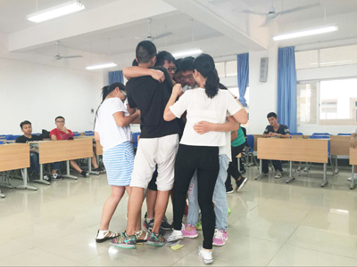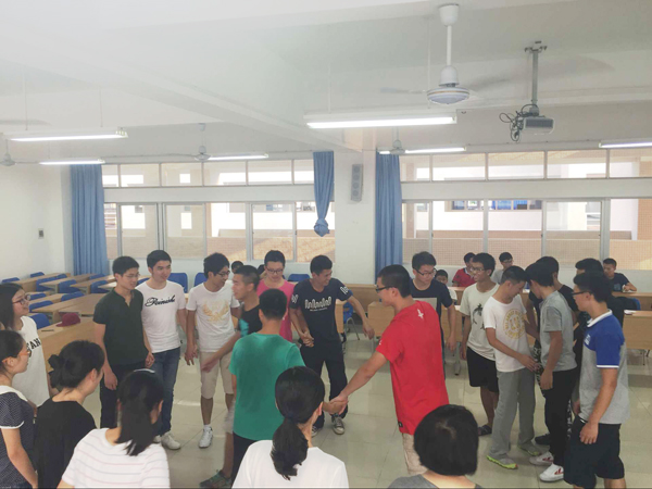 活动由团体辅导游戏开场,通过“同舟共济”和“环环相扣”两个游戏活跃了现场氛围。大家彼此合作、配合默契,完成了十个人同站一张A3纸的任务,也解开了20多个人手环的“死结”,让同学们懂得团体合作的重要性。