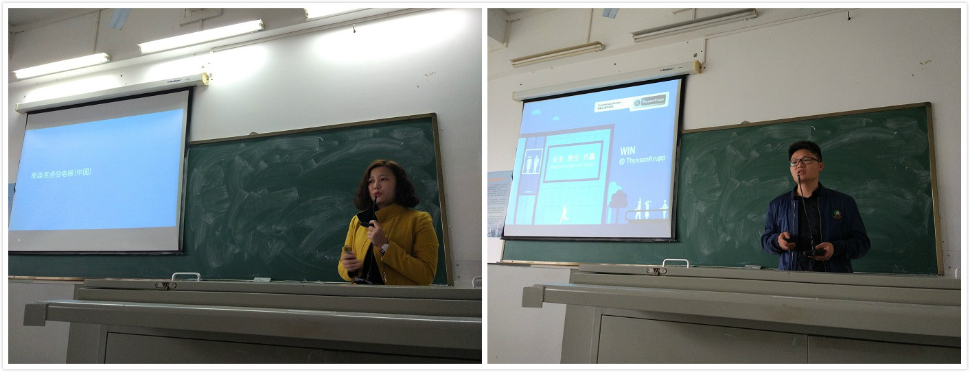 2016年11月26日,pa电子官方网站学生职业发展协会联合蒂森克虏伯集团举办的《电梯安全与技术》培训会在pa电子官方网站3教205顺利开展。出席活动的有蒂森克虏伯集团海口分公司人事主管何忨晶、三亚分公司售后主管王金路等4名工作人员、pa电子官方网站学工办主任崔建兵老师、40名学生以及部分机电职协职工作人员参加了本次培训会。