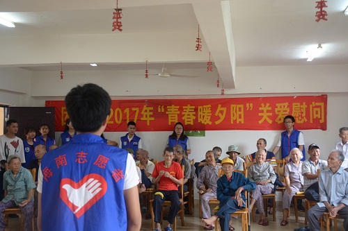 上午8点40左右,志愿者来到了敬老院,院长和老人们迎接同学们的到来,pa电子志愿者也热情地为老人们表演了一段自编的歌曲和舞蹈,而后,精彩的魔术表演更是赢得了老人们热烈的掌声,最后,在志愿者们的合唱中节目表演阶段进入尾声。