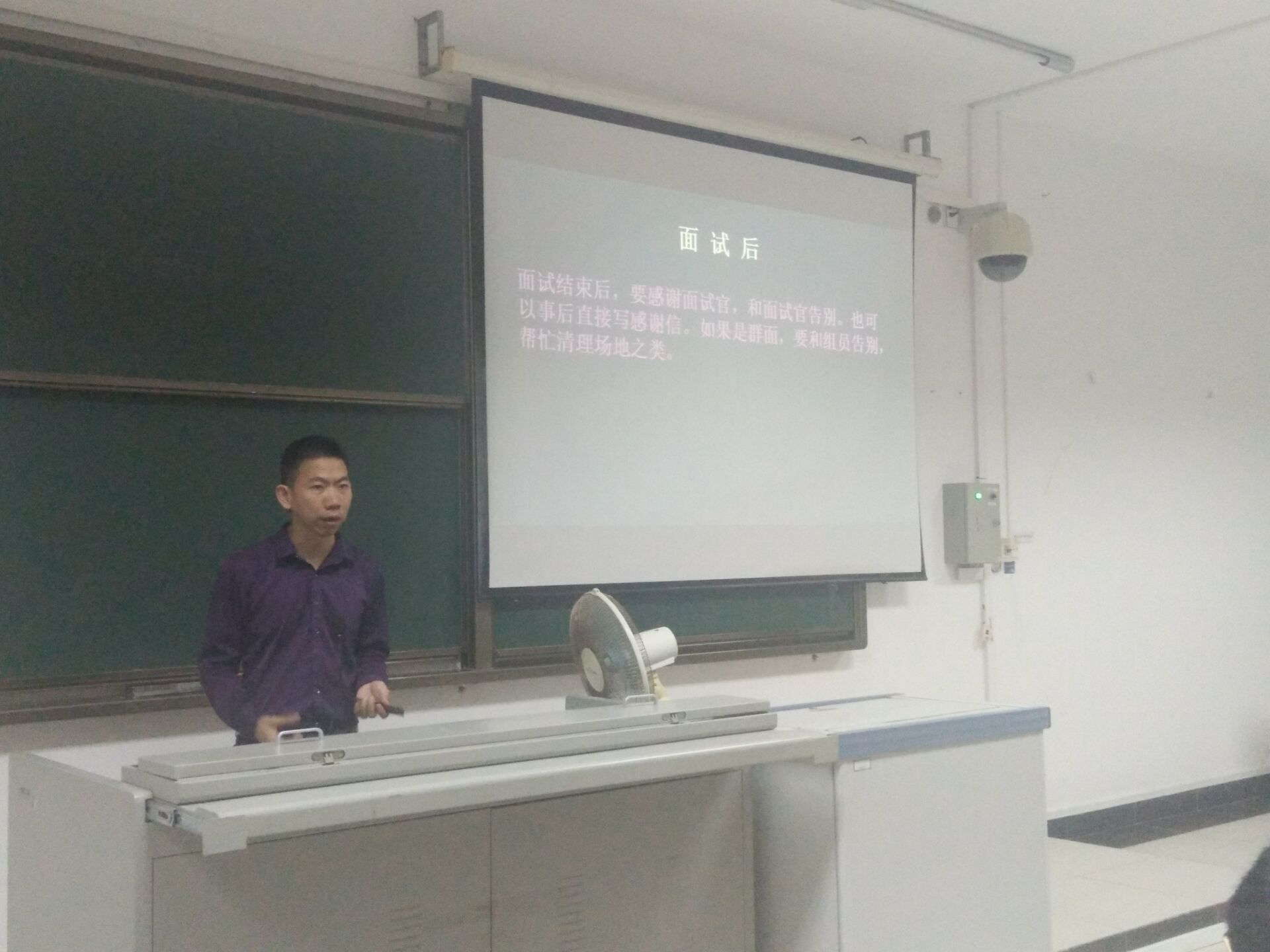 2017年5月9日,pa电子官方网站职业指导专题讲座在三教学楼309教室成功举办。出席活动的有星火教育招聘专员杨志浩老师、学工办主任崔建兵老师、年级辅导员傅悦老师,2014级及报名求职模拟面试的同学近200人参加。