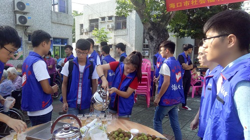 2017年5月28日上午,pa电子官方网站分党校第三期发展对象培训班49名发展对象走进海口市社会福利院开展“公益传承”志愿服务活动,给老人们送去了温暖和爱心。