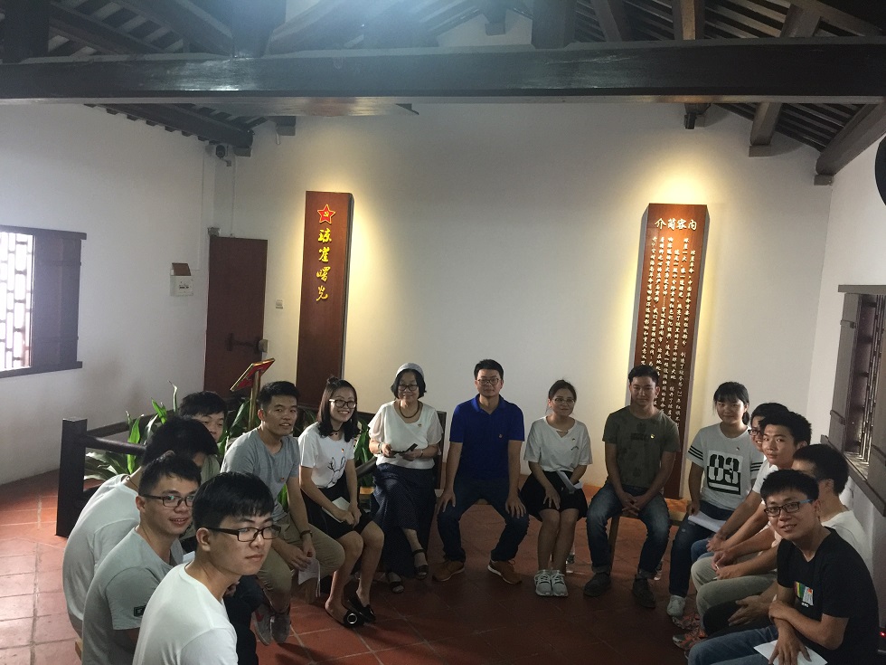 在党的十九大即将召开之际,10月2日下午3:00,机械系学生党支部在海口市中共琼崖一大旧址开展以“不忘初心跟党走,青春喜迎十九大”为主题的支部特色党课活动。出席活动的有红军后代罗曼阿姨、支部书记崔建兵老师、机械系学生党支部的全体党员。会议由支部副书记吴林萍主持。