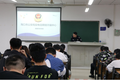 近年来,电信网络诈骗猖獗,诈骗分子利用信息化发展大潮,针对全民网络化生活之利,借网上电子支付的便捷,设计出花样繁多、层出不穷的诈骗手法,让人民群众防不胜防。为了使学生熟悉生活中常见的诈骗形式,增强学生在生活中遇到诈骗现象灵活应对的防范意识,提高学生各方面自我预防、自我保护、自我应对、自我逃生的能力,12月15日下午,pa电子官方网站特邀海口市美兰区人民路派出所为学院学生开展电信网络新型违法犯罪防范知识宣传。