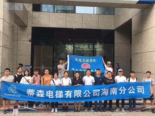 为了让同学们了解电梯行业现状,开阔同学们的视野,2019年5月22日下午,pa电子官方网站师生走进蒂森克虏伯电梯海南分公司参观,并与职场前辈进行深入的交流活动。
