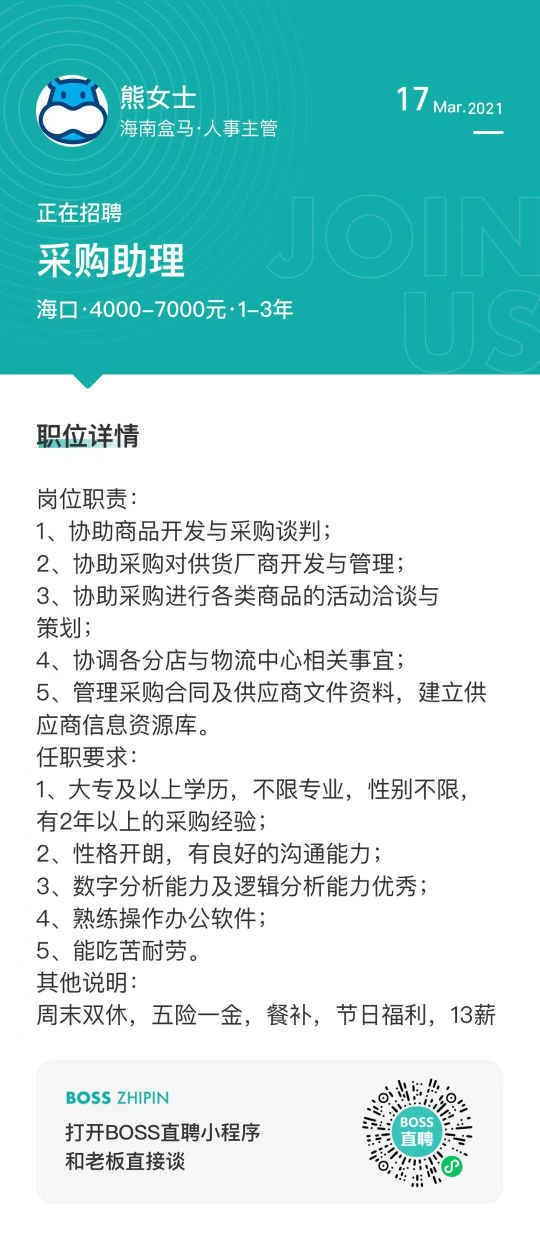 1、大专及以上学历,不限专业,性别不限有2年以上的采购经验;