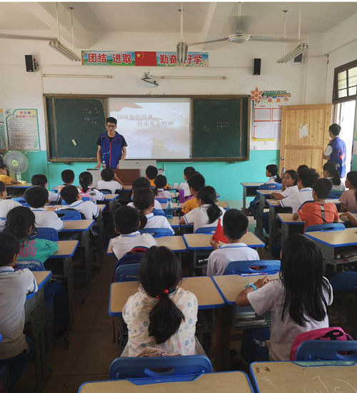 支部成员们在下午14:30从pa电子官方网站北门乘坐大巴出发,前往大林小学。海南的四月,虽然天气异常炎热,党员们却热情不减。在课堂上,支部成员们首先通过有奖知识竞答的方式,生动有趣地为同学们介绍了什么是红色精神、五四爱国运动、红色经典与革命精神,随后播放了相关的视频引导同学们一起探讨学习。支部成员们共同表演了以“五四爱国运动”为主题的话剧,再一次带领大家体会这场具有里程碑意义的革命运动中,爱国青年们勇于奉献,不怕流血牺牲的伟大精神!