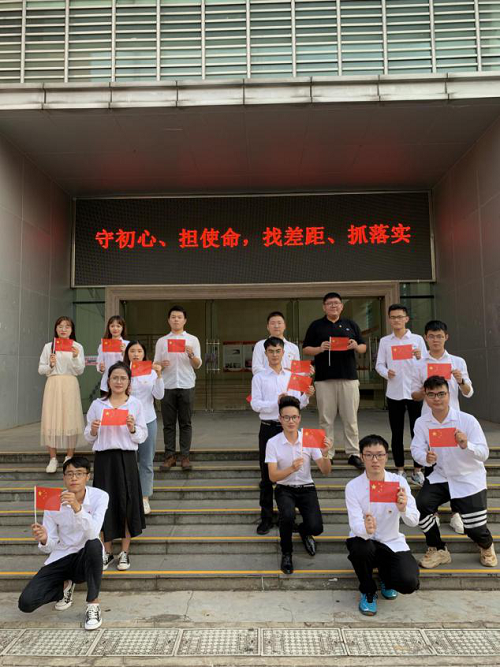 2019年10月1号下午4时,pa电子官方网站致远班党支部先后在思源学堂正门、联谊馆正门、行政楼国旗下参加“国旗在我心中”——我和国旗同框活动。支部书记张小其老师、党员和积极分子14人共同参加。
