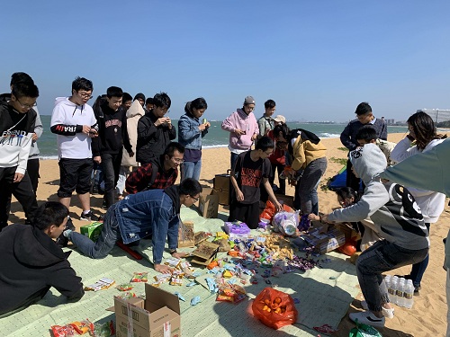 此次素拓活动历时一天,上午11时许,全体成员在满怀期待中抵达假日海滩。各部门成员各司其职,搭帐篷、购买早餐、协调活动用道具、准备烧烤食材。大家忙得不亦乐乎,欢声笑语中丝毫看不出进入考试周以及承办校级招聘会给中心小伙伴们带来的压力与疲惫。