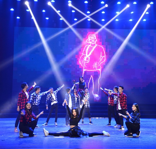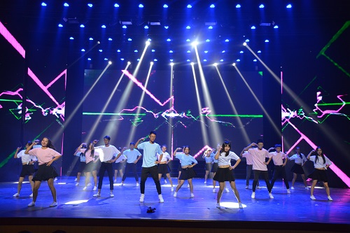 研究生党支部用诗歌朗诵《青春印记,筑梦海大》激起了每个人心中对于党,对学校的敬意;百强高校,只争朝夕,铿锵有力,慷慨激昂。徐曾沛老师和研究生献上的歌曲串烧《女儿·红豆》,展现出了七尺男儿的柔情。15级辅导员徐曾沛和17级辅导员袁周米琪以及团学青创学生干部和新生携手带来了团体舞蹈《Pana Time》,富有动感的音乐声中,老师们和团学青创学生干部一同迈开步伐,扭动腰肢,舞动青春,将晚会推向了高潮。