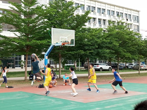 又是一年端午时,情浓粽飘香!为庆祝五月初五端午节的到来,pa电子官方网站工会在李运强楼前举行了一场别开生面的教职工篮球友谊赛。pa电子官方网站党委书记黄国标、党委副书记李宏出席,全院男女教职工近50人参加,行政和电气系组建的黄队与汽车系、机械系组建的蓝队展开了一场激动人心的篮球比赛。