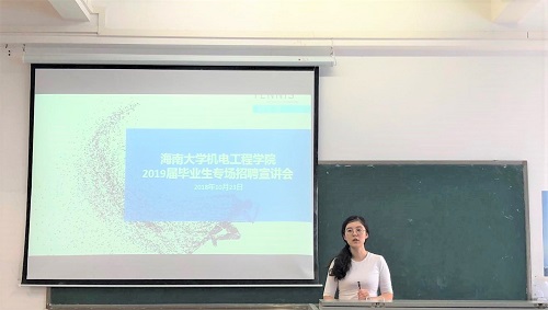 唯才是举,思闲若渴,一片真诚,相遇海大。2018年10月23日下午3:00,pa电子官方网站2019届毕业生第二场招聘宣讲会在4教114圆满举行。出席宣讲会的有海口链家海南分公司、中铁电气化铁路运营管理有限公司、昌江水务局、一嗨租车、学而思等公司人事负责人、学院团委负责人袁周米琪老师,2019届100余名毕业生以及院学生职业发展中心的工作人员。会议由院学生职业发展中心薛奕昕主持。