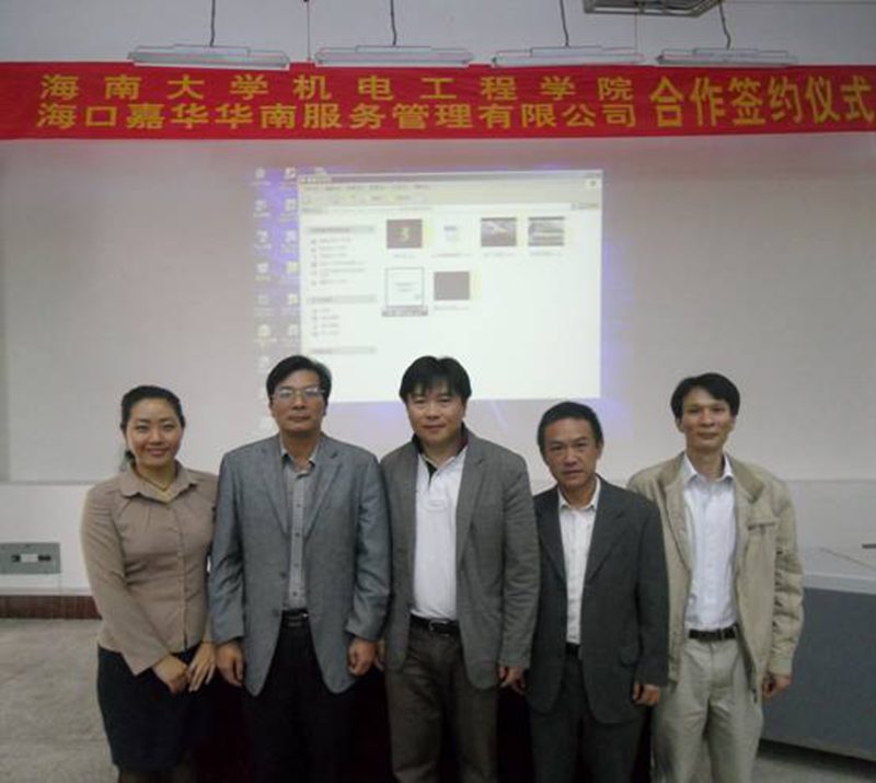 随后,学院党委书记符新与嘉华公司华南区域总裁陆靖共同签订了共建“嘉华班”合作协议,并合影留念。