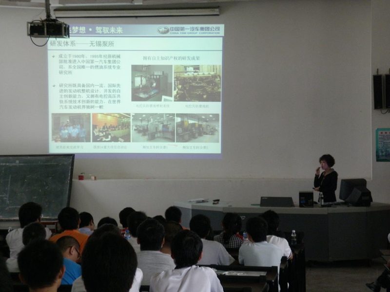 2011年11月5日上午10:30,天津一汽夏利汽车股份有限公司和一汽解放汽车有限公司、长春一汽富维汽车零部件股份有限公司在我校电教室举行2012校园招聘会。