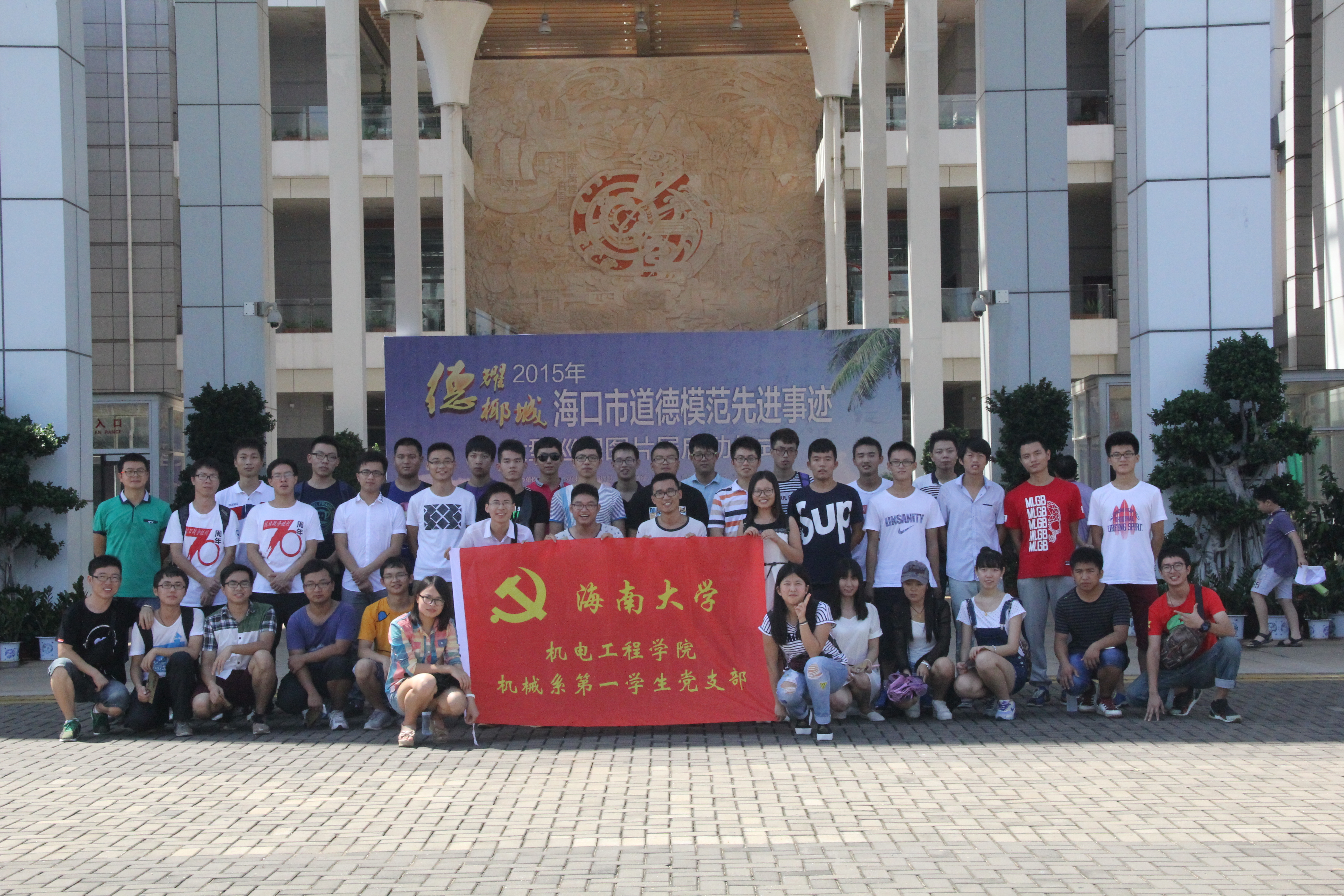 为纪念抗日战争胜利暨世界反法西斯战争胜利七十周年,9月4日上午,由崔建兵老师带队,机械系第一学生党支部和2013级学生工作委员会40余人,前往海南省博物馆及海口市博物馆参观学习。