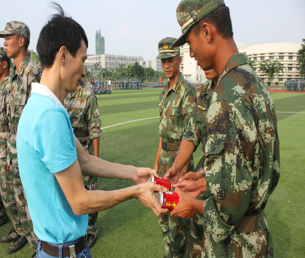 黄国标书记为军训教官发送饮品