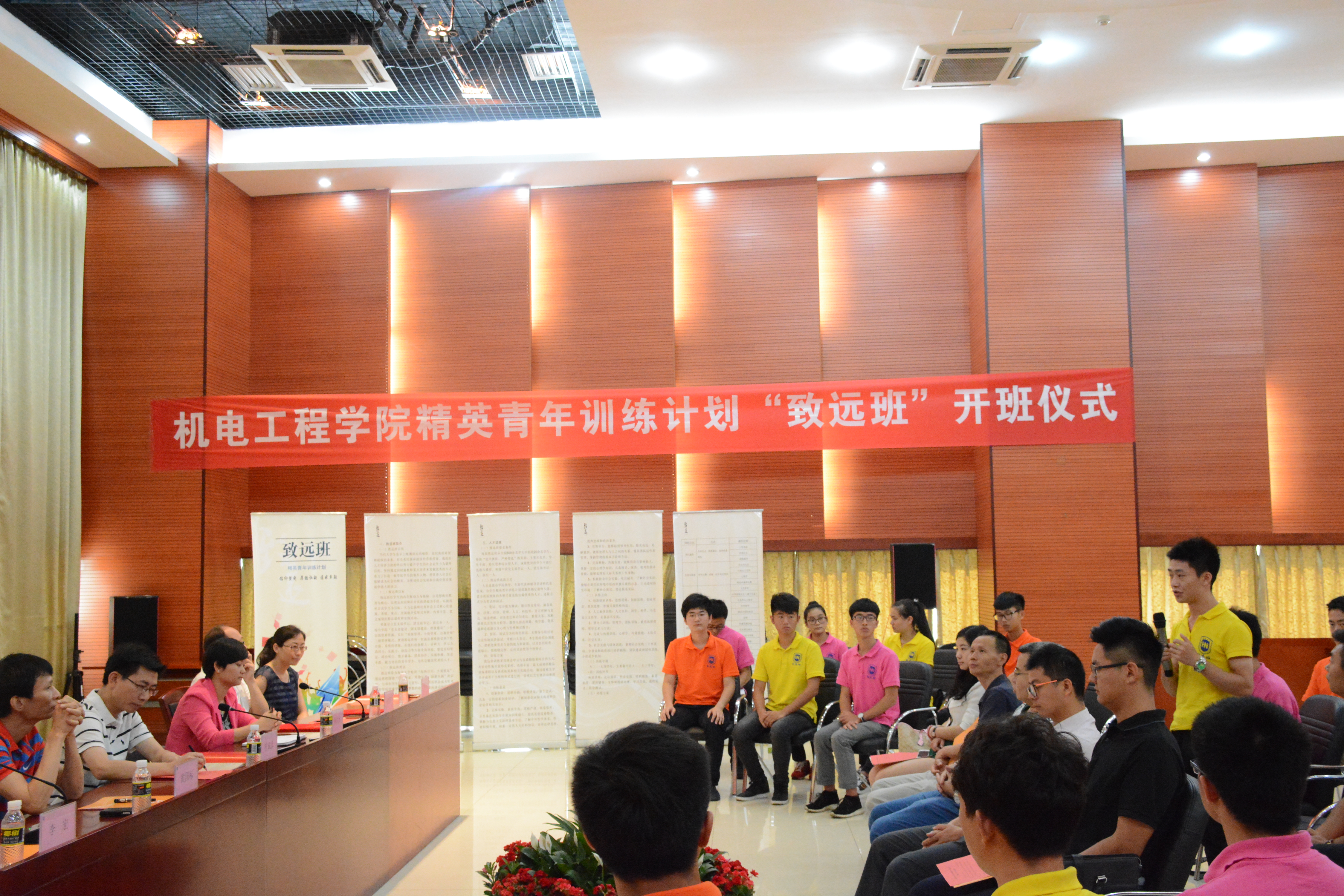 4月25日,pa电子官方网站精英青年计划“致远班”开班仪式在我校思源学堂多功能厅顺利举行。pa电子官方网站学工处符成彦处长、校团委林洪冰书记、组织部杨智平副部长受邀出席开班仪式,学院党委黄国标书记、李宏副书记、马庆芬副院长,电气系主任李有军副教授、汽车系主任李劲松副教授,学院学工办老师以及致远班全体同学参加本次开班仪式,仪式由“致远班”成员郭萌萌主持。