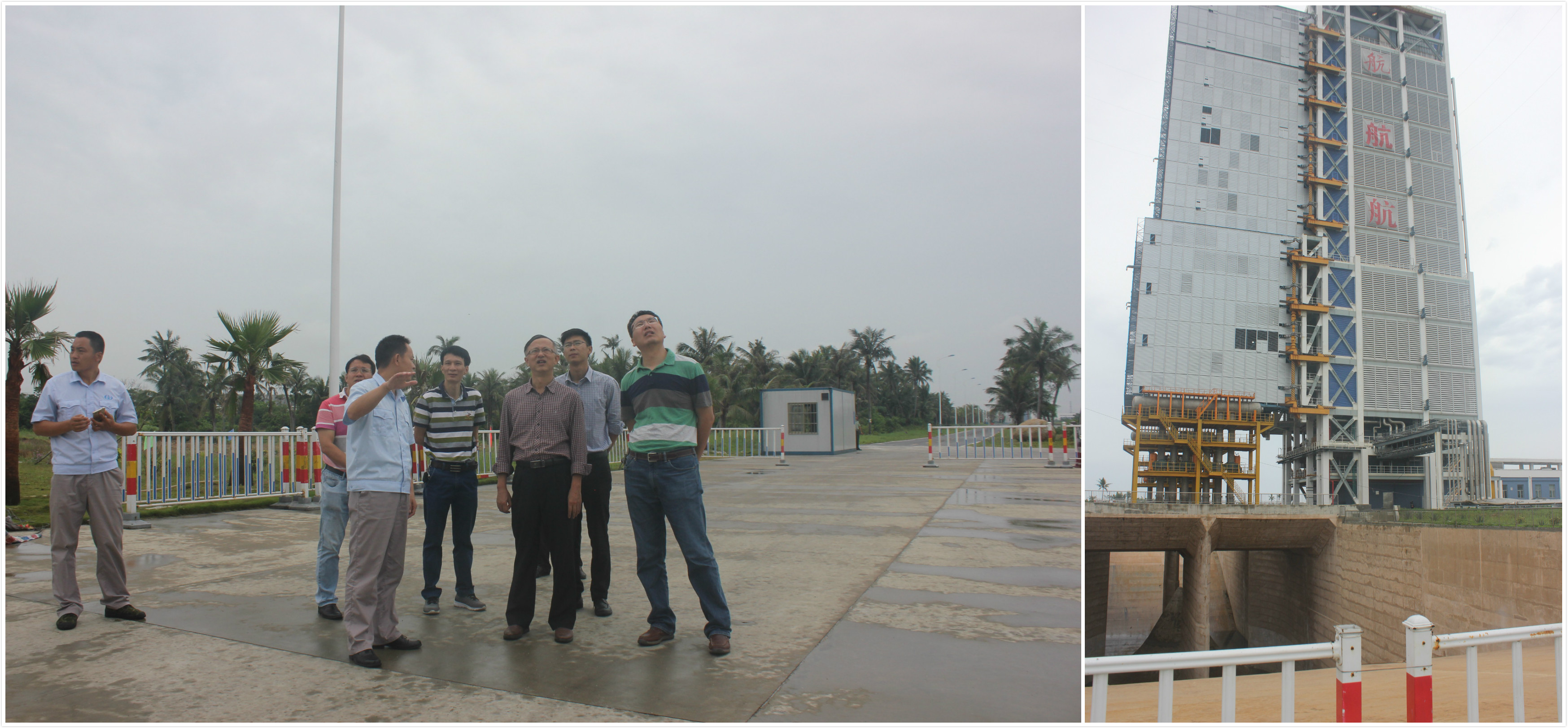 椰风海韵,风景旖旎。经过两个多小时的车程,翁绍捷院长一行到达文昌航天发射中心,在工作人员的陪同下参观了文昌航天发射场指挥控制中心、发射塔以及移动发射平台。发射站政委鲁建为我们详细介绍了整个文昌航天发射的具体情况,发射塔采用了国际最新的设计理念和最新技术,深凹到地下三层楼高的导流槽技术含量非常高,承受着火箭发射时高温、高速、高压的燃气流的冲刷,并将有毒气体分流,排到远离发射塔的空间,从而保护火箭周围的建筑设施。针对鲁建政委谈到发射塔及避雷塔材料易腐蚀情况,翁绍捷院长表示pa电子有博士专门从事机械材料腐蚀性研究,愿加强与文昌航天发射中心的交流合作,并邀请鲁建政委冬季小学期到pa电子授课。