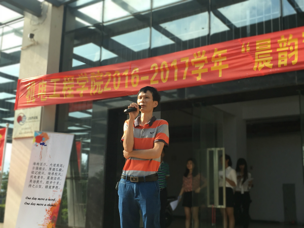 新生辅导员印一凡老师寄语新生。她在发言中表示,此项活动立意深远,对学生学业进步影响重大,对同学们提出了实际要求,并向新生介绍了“晨韵”英语晨读实施条例和管理制度。