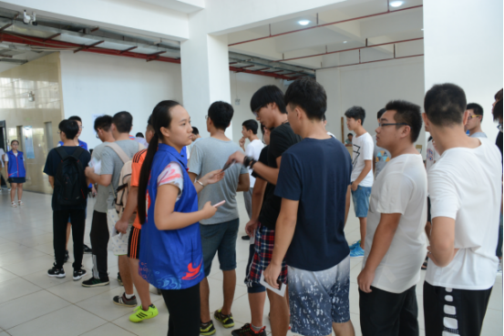 学工办组织学生分组按序排队