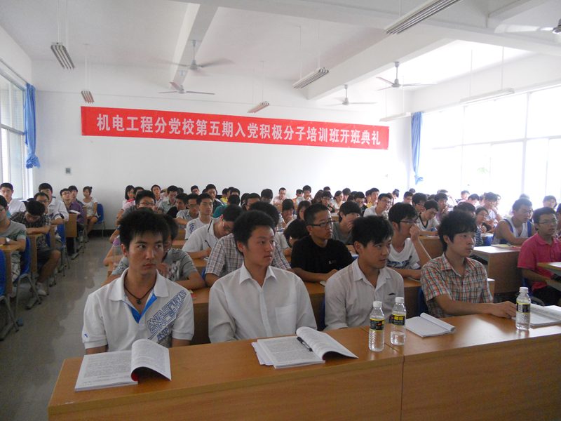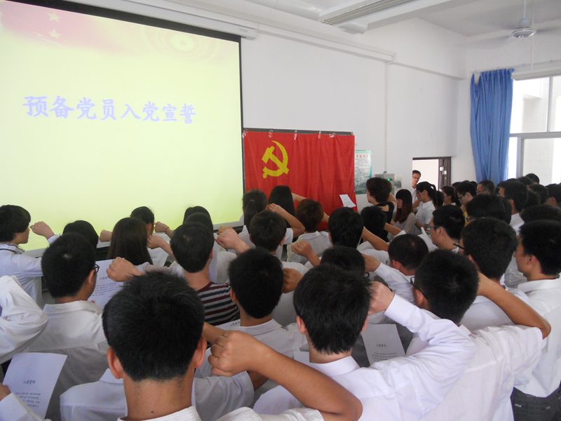4月21日下午3点,pa电子官方网站分党校在四号教学楼106举行第五期入党积极分子培训班的开班典礼暨入党宣誓仪式。pa电子官方网站党委副书记黄国标、学院团委书记崔万春出席了仪式,参加仪式的新党员和入党积极分子共200多人。开班仪式由学院学工办主任陈秀妍主持。