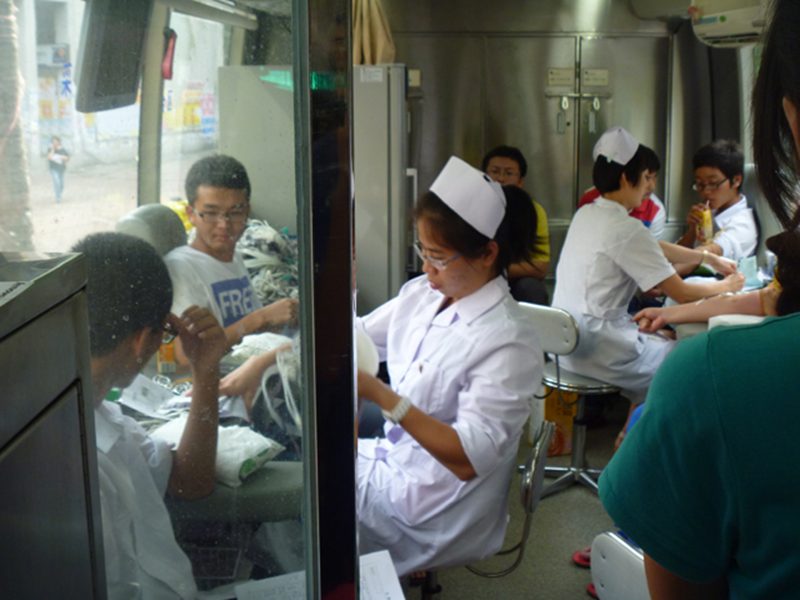 生命需要血液,爱心正在传递;5月24日下午,在pa电子官方网站青年志愿者协会的组织下,机电学子在第二食堂门口参加了无偿献血活动;为挽救他人的生命奉献出自己的力量。 烈日当空,酷热难耐,但是这也难以阻挡同学们如火的热情;早早的在食堂门口排对等候献血;同学们按顺序进行了领表登记、血型测定、体检、抽血和观察休息。海口市血站医护人员热情而耐心地给同学们讲解相关事宜,机电学院青年志愿者们也在场外进行了一系列有关献血的宣传工作,丰富了同学们的献血知识,也减少了同学们的顾虑与担忧;献血整整持续了三个小时,虽然每个人献出的血液并不多,但是集体的力量是巨大的;可能手臂还有些疼痛,但是,每个人的脸上都带着满足的笑容,因为,他们的爱心温暖了这个校园。 此次献血活动,体现了pa电子学生关爱健康、关爱他人的精神品质,培养了大学生的社会责任意识和无私奉献的精神;希望有更多的人加入无偿献血的队伍中来,用自己的爱心和血液,为和谐社会、和谐校园奉献出了自己的一份力量。