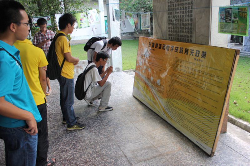 2013年6月20到6月24日,pa电子在泰坚楼一楼大厅举办了“ 诚信为本,青春逐梦”主题图片展,pa电子办理了生源地信用助学贷款同学及有意向办理生源地信用助学贷款的300多名同学参加了本次活动。