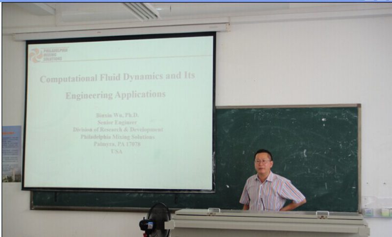 美国专家Peter Wright先生向同学们介绍了美国生物质能源的应用情况,并站在学术前沿的高度阐述了如何提高自然资源利用率的问题,分享了他多年来对如何高效的将自然资源转化为生物质能源的经验。吴斌鑫博士利用自己的研究成果向同学们展示了计算流体力学在多个工程领域的应用,并向同学们介绍了自己为了得到最权威、最新的数据而走访中外各所研究机构和高校的经历,深入浅出的将自己的研究心得传授给同学们。