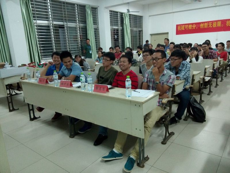 11月16日晚7时30分,由pa电子官方网站2013级学生工作委员会承办的机械模型创意制作决赛在pa电子官方网站三号教学楼207科室成功举办。出席比赛并担任评委的老师有2013级辅导员崔建兵、2013级班主任林茂、张少波、郭志忠、团委副书记李志强,以及100余人各宿舍学生参赛队伍。