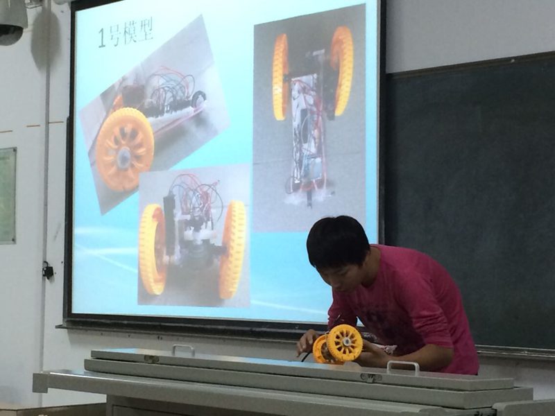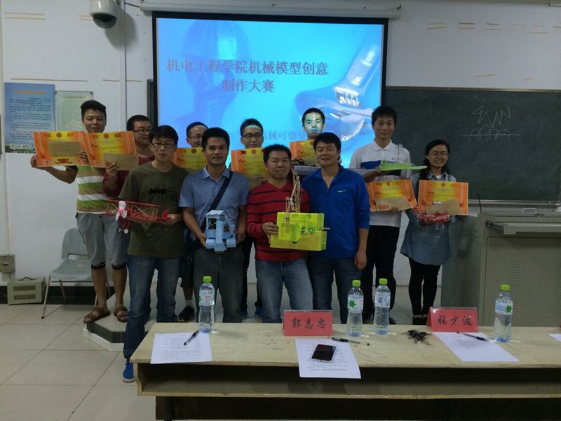 据悉,共12件作品入围此次决赛。在主持人精彩的开场白后,各宿舍代表依次介绍各自作品,各队均解说详尽,生动形象。部分参赛队伍还对其作品进行现场演示,不仅有利用液压原理制作的挖掘机;利用机械原理制作的飞机;还有利用电解质原理制作的帆船。其中,使用价值颇强的谷物分离机和测距仪尤其夺人眼球。接着,评委们针对作品设计原理以及设计思路对各参赛队伍进行提问,并给出改进意见。在代表们慷慨激昂的解说与评委们的精彩点评中,活动一步步接近尾声。最后,液压挖掘机夺得了本次大赛冠军。在同学们的掌声中,本次机械模型创意制作决赛圆满结束。