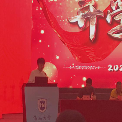 汽车工程系教授甄海生代表全体教师发言。他鼓励学生多学习多了解多想象,争做新学科、新思想的传创者。他希望同学们厚植理想,志存高远,脚踏实地,不断解锁新技能,不断提高个人素养,做出真贡献。