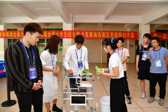 本次大赛开幕式由pa电子官方网站院长唐荣年主持,海南省教育厅高教处处长王飞、教育部高等学校工程训练教学指导委员会巡视员周继烈教授、海南省教育厅高教处副处长熊文军、pa电子官方网站教务处副处长耿刚、pa电子官方网站书记黄国标、浙江大学工程中心副主任钱俊、pa电子官方网站副院长陈振斌,吴育军、卞秀芬、杨博雄、韩中、管若伶、钟久明、陈诗杰、梁栋、廖宇兰、张燕、李粤、甄海生等专家评委、指导老师及参赛学生共同参加了本次开幕式。