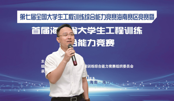 开幕式上,王飞处长表示学科竞赛对提升大学生创新实践能力、推进创新型人才培养,助推学科建设,实现科研成果转化和打通产学研用具有重要意义。省教育厅高教处一直高度重视大学生学科竞赛,旨在通过省级赛事的落地来贯彻落实国家创新驱动与制造强国战略,培养面向适应全球可持续发展和自由贸易港建设需求的工程师后备力量。指出大赛举办本着公平、公正、公开的原则,确保竞赛顺利进行,让同学们在竞技中展示风采,在交流中碰撞思维,创青春风采,逐智造梦想。