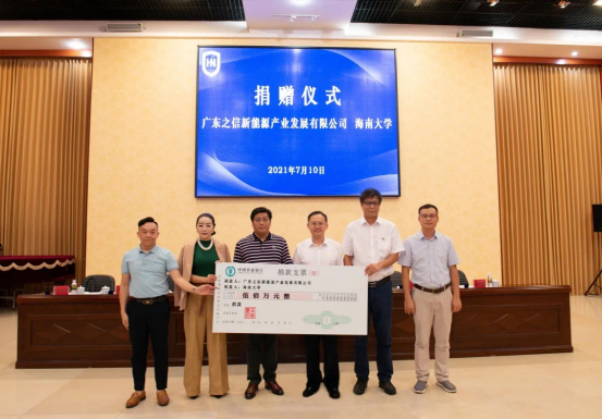 7月10日下午,pa电子官方网站1995级农业机械化及其自动化专业、广州校友会副会长、广东之信新能源产业发展有限公司董事长赖新方心系母校、慷慨解囊,为母校捐赠500万元人民币用于儋州校区建设。捐赠仪式在pa电子官方网站思源学堂举行。