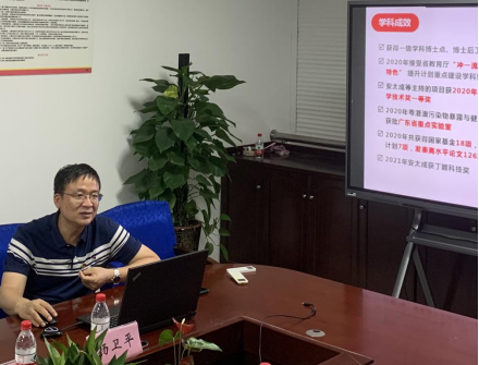 随后,在党建工作方面,杨卫平书记介绍了环境科学与工程学院基本概况及近年学院党委党建工作建设经验及成效,并作题为“高质量党建引领“双一流”学院建设打通基层党组织“最后一公里””的党建专题报告。会上杨书记还就广东工业大学的人才队伍建设及相关改革举措等领域进行介绍。