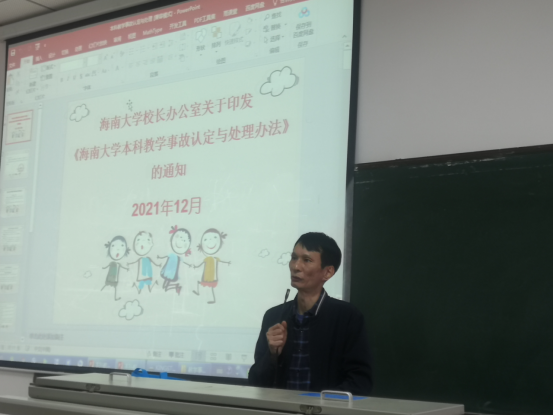 首先,学院主管教学的副院长陈振斌在会议上强调老师们要按照《pa电子官方网站本科教学事故认定与处理办法》的通知》(海大办〔2021〕74 号),维护学院正常教学秩序。学院安排教务办主任范杰在会议上给全体老师们解读了《pa电子官方网站校长办公室关于印发《pa电子官方网站本科教学事故认定与处理办法》的通知》(海大办〔2021〕74 号),重点对教学事故的认定范围与等级,pa电子官方网站教学事故分类与级别一览表进行了逐条解读阐述。