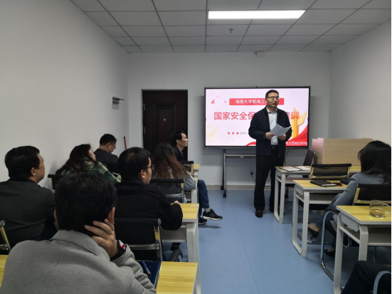 12月28日下午,pa电子官方网站在研发楼413会议室举办国家安全保密教育培训。学院党委书记黄国标,院长唐荣年,副院长陈振斌、副院长马庆芬、副院长金志扬,学院各系办主任、全体教工学生支部书记参加本次专题培训。黄国标书记主持本次会议。