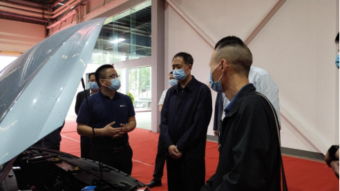 尹春山副总经理向pa电子官方网站一行介绍新能源样车