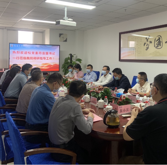 4月8日上午,校党委书记符宣国一行到pa电子调研指导工作并座谈交流,党委常委、副校长胡新文,党委常委、纪委书记郑尉杰,党委常委、统战部部长陈明宝陪同,教务处、基建处等职能部门主要负责人参与。