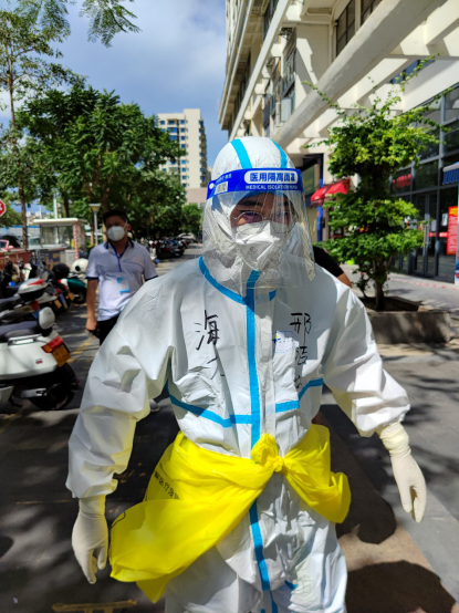 疫情防控恰逢海南炎热酷暑,但是两位老师身为志愿者的责任与担当一丝不减,在为人民提供核酸服务的同时,顶着正午烈日为同心家园十期、南悦新城、保利悦府等高风险封控楼栋住户配送物资、粘贴封条。