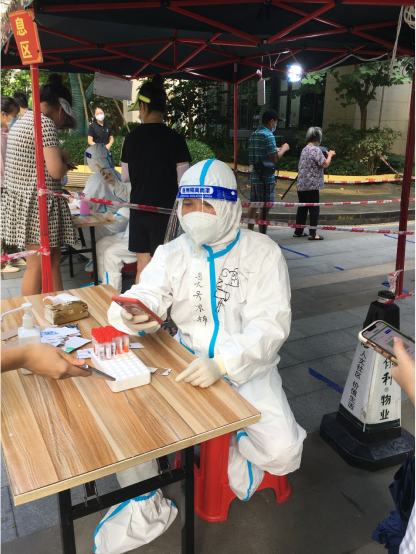 抗疫期间,两位老师投身于疫情管控区吉阳区东岸村,为保利悦府小区1500名住户提供了核酸检测服务,以自身的无畏与担当精神为核酸采样的高效运转提供了保障。凭借高度的工作热情和抗疫决心,深入到东岸村同心家园十三期、港门村第一、第二、第五网格等高风险封控区,为封控住户提供上门采样,共计完成完成核酸信息采集超1000人次。