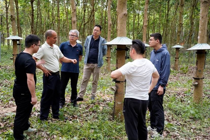 2024年4月12日,pa电子官方网站副校长邱锡光,pa电子官方网站广州校友会会长、广州市斯得电子有限公司董事长罗桥水(1994级农业机械化及其自动化专业)莅临pa电子官方网站儋州校区天然橡胶智能化生产橡胶实验基地参观智能割胶装备的研发与应用情况,pa电子官方网站党委书记、国家天然橡胶产业体系副首席科学家张喜瑞介绍了天然橡胶的产业现状、割胶装备研发进展及应用前景。